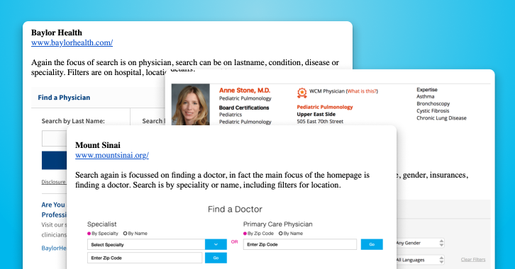 Patients searching for doctors were anxious and often searching under stress, they needed the simplest search with the least cognitive load.
