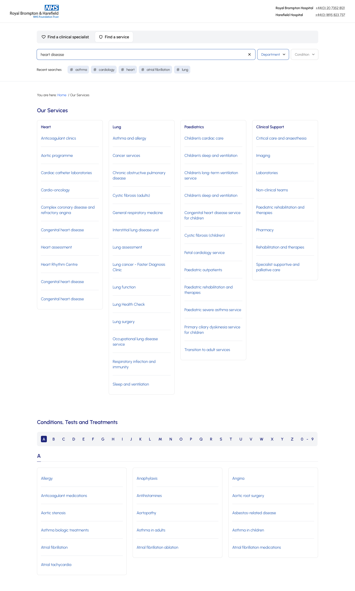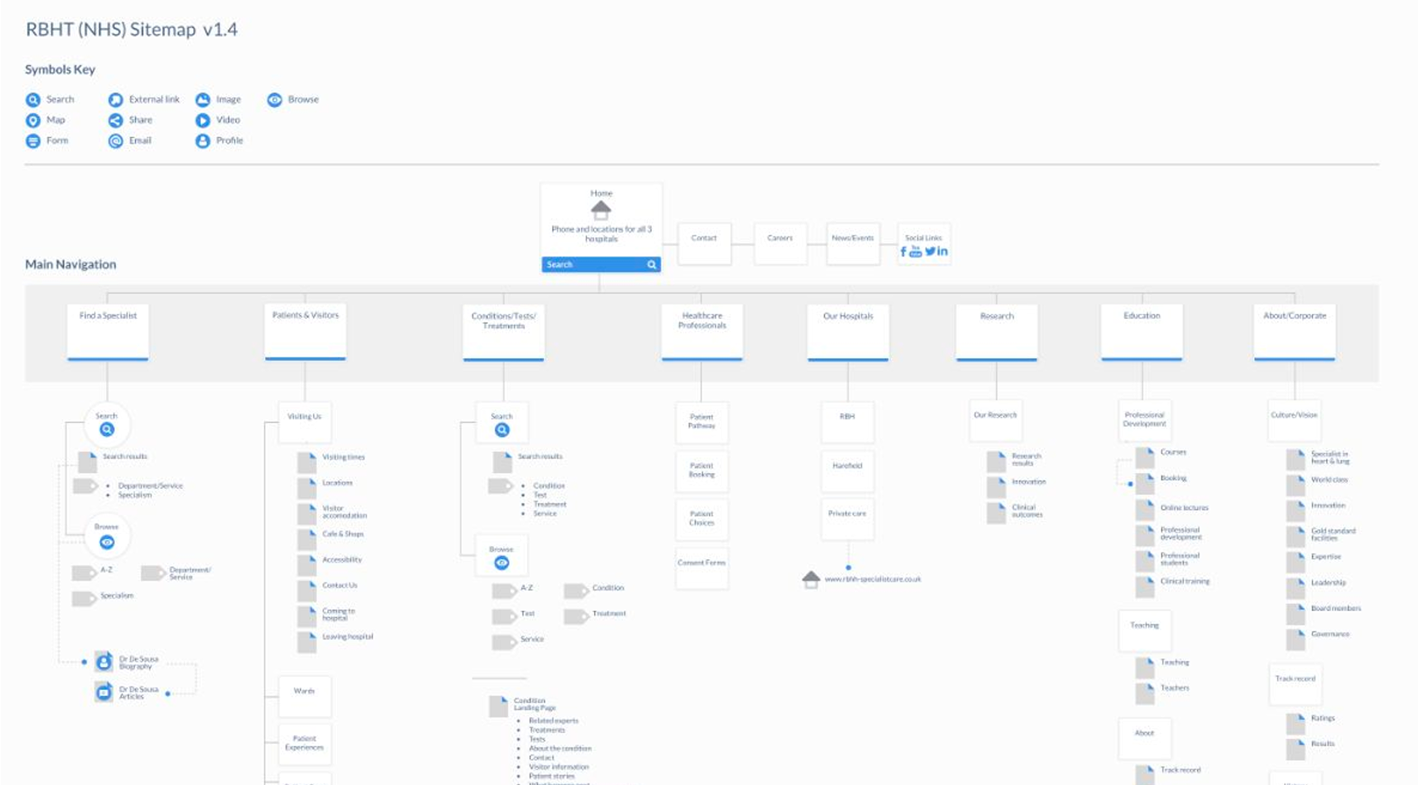 Trust's existing website was outdated, difficult to navigate, and failed to reflect its prestigious status. Two of the key areas, “Specialists” and “Conditions” were disjointed and difficult to navigate.
